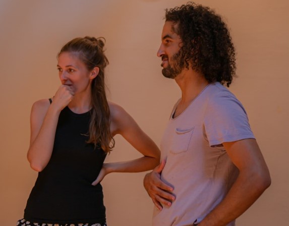 Moad Haddadi, Danseur Chorégraphe, Né a Marrakech en 1994, Moad pratique la danse là où il peut, dans différents lieux allant d’un apprentissage dans les rues en compagnie de jeunes danseurs hip hop jusqu’à une pratique en salles. En 2012, il participe à l’appel de la compagnie Anania pour un projet de formation de danse contemporaine Al Mokhtabar II dans le cadre de la saison artistique Daba Maroc à Bruxelles.
