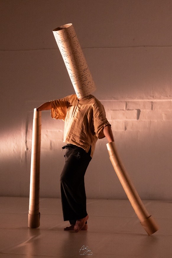 Deux univers qui se croisent, entre passé et présent, vide et plein, silence et son, interrogeant la mémoire et notre héritage. Moad est comme un nouveau-né, une page blanche sur laquelle son entourage trace son nom, sa lignée, ses croyances… Qu’en reste-t-il? Moad Haddadi est parti d’une recherche autour du vide ou celui-ci devient une matière sensible pour aborder un moment fondateur dans son parcours, un instant d’entre deux décisif. Ici, la pièce saisit la tension d’un statut en bascule : attendre, décider, franchir.